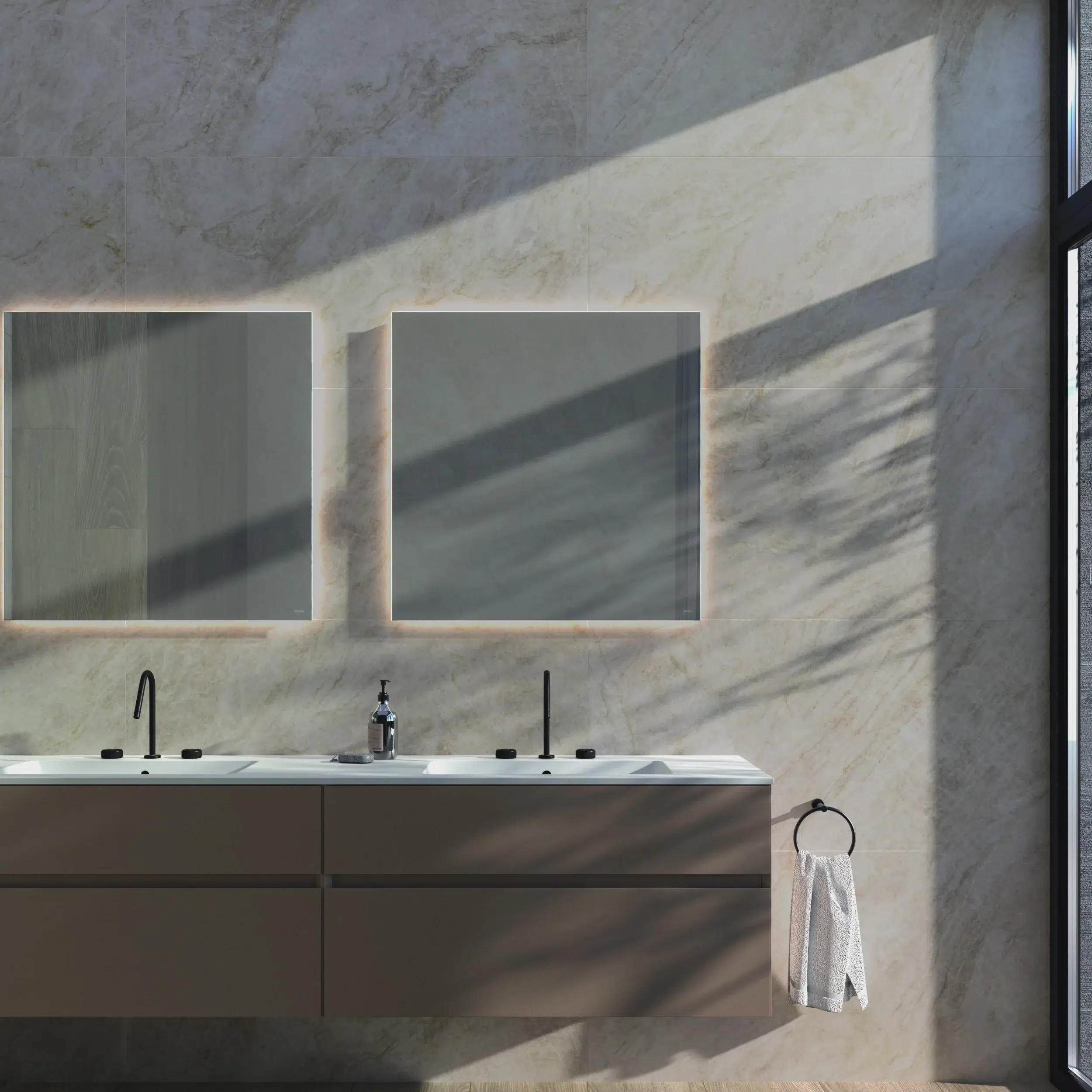 View ShowroomsAgra Nature is the definitive expression of the range – a marble-effect porcelain wall tile in a rich, warm ivory base tone traversed by flowing golden veining of exceptional natural realism. The polished glazed surface takes the beauty of the pattern to its absolute maximum, amplifying light and giving every wall surface a mirror-like depth that feels genuinely luxurious at any scale. Used as a full bathroom wall finish or as a hotel-style feature behind a bath or basin, Agra Nature creates an environment of rare elegance and material presence.
