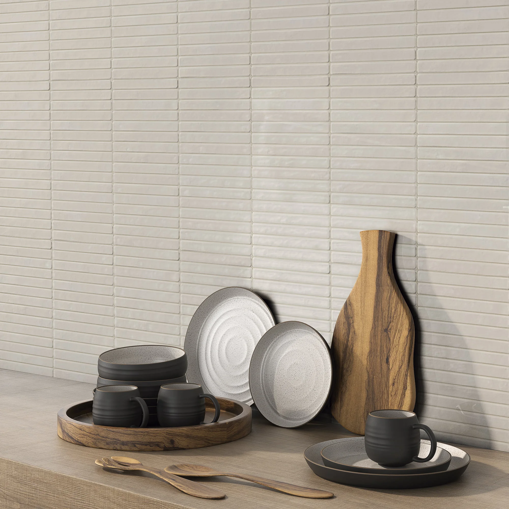 Biarritz Bone is a warm, soft off-white gloss ceramic tile that brings a gently luminous, welcoming quality to the range’s pencil format. The warm cream undertone prevents the gloss from reading as sharp or clinical, giving walls a naturally inviting character that suits bathrooms and kitchen splashbacks equally well. One of the most broadly versatile colourways in the Biarritz collection, Bone complements both cool and warm material palettes and allows the pre-cut format to be appreciated without the distraction of a strong colour.